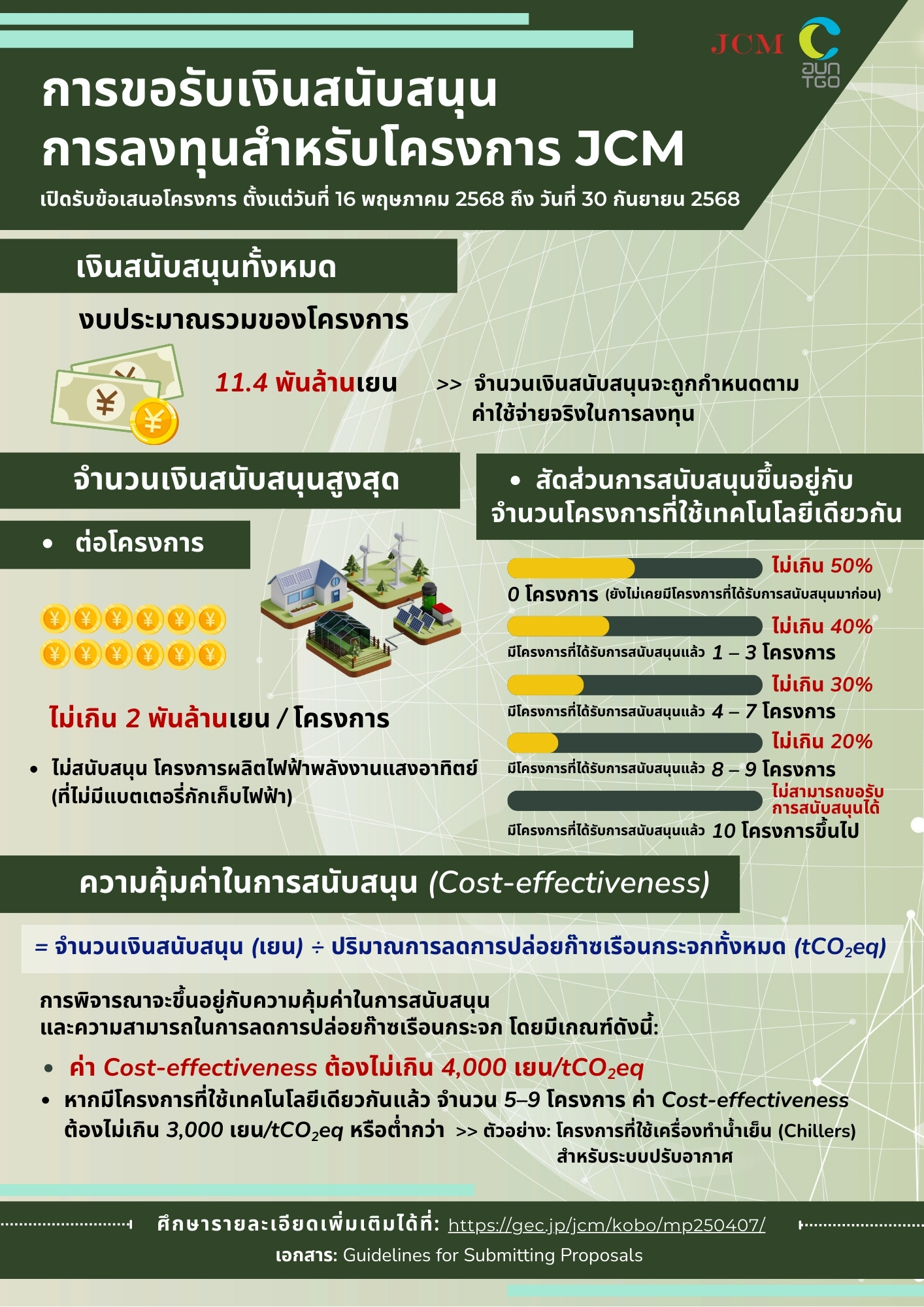 คำถาม: แนวทางการขอรับเงินสนับสนุนการลงทุนสำหรับโครงการ JCM ต้องพิจารณาอะไรบ้าง